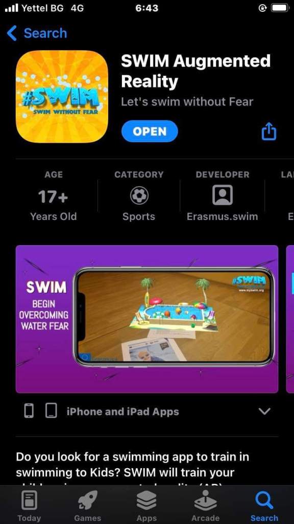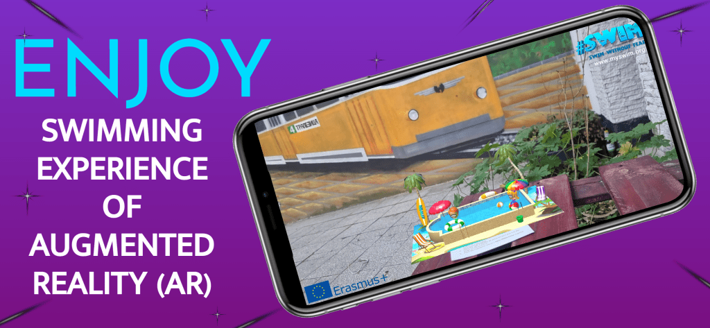 Augmented reality is an interactive experience that enhances the real world with computer-generated perceptual information. Using software, apps, and hardware such as AR glasses, augmented reality overlays digital content onto real-life environments and objects. #SWIM project team is ensuring an augmented reality experience for kids, which is free of charge and can be installed, following the instructions below. The aim of the AR application #SWIM is to empower enjoyment fro water experiences and through this positive adventure – to reduce the fear of water in early age development. Enjoy #SWIM – Swim Without Fear Augmented reality.