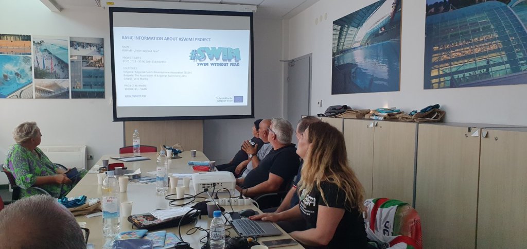 In the period 25-28 of August 2023, in Rijeka, Croatia was held the mid-term meeting of the international consortium, that implements the innovative initiative #SWIM – Swim Without Fear, that deliver its activities until June 2024. Representatives of the consortium had the chance to analyze the completed so far #SWIM activities, to approve the project research about hydrophobia in early age, implemented until the meeting and to plan the remaining actions – handbook for kids and parents, testing and dissemination events. During the meeting the #SWIM partners from Bulgaria and Croatia had practical visits in Kantrida Swimming Pools and fruitful meetings with sport experts, managers, coaches and decision makers.