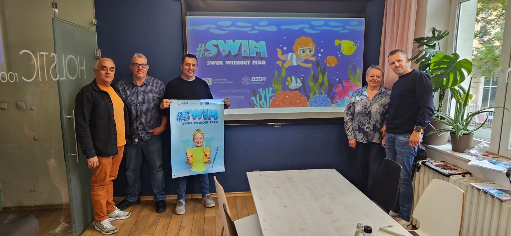Earlier in the day, the final partnership meeting of the project took place, gathering the international consortium that executes the innovative initiative #SWIM – Swim Without Fear, which carries out activities until June 2024. Representatives of the consortium had the opportunity to review the activities of #SWIM carried out so far and to approve the children’s book for overcoming hydrophobia at an early age. To date, various tools have been developed to ensure children perceive the aquatic environment as a fun and positive activity – an augmented reality app, a song for children, and a coloring book, all available for free download by parents and/or sports organizations on the project’s website: www.myswim.org.