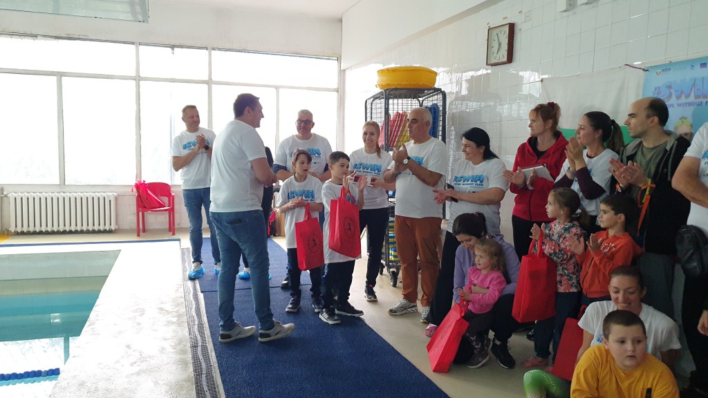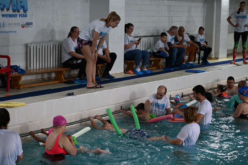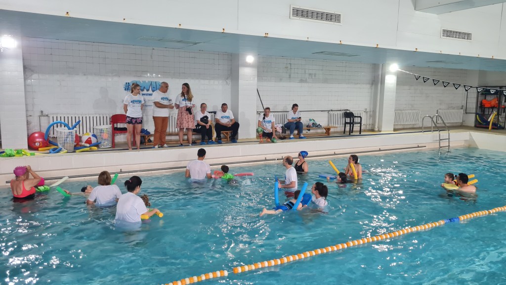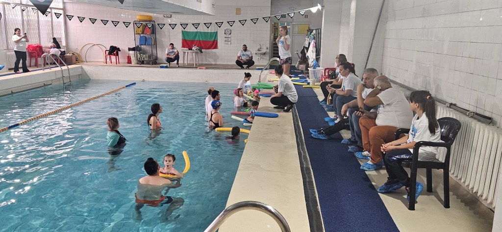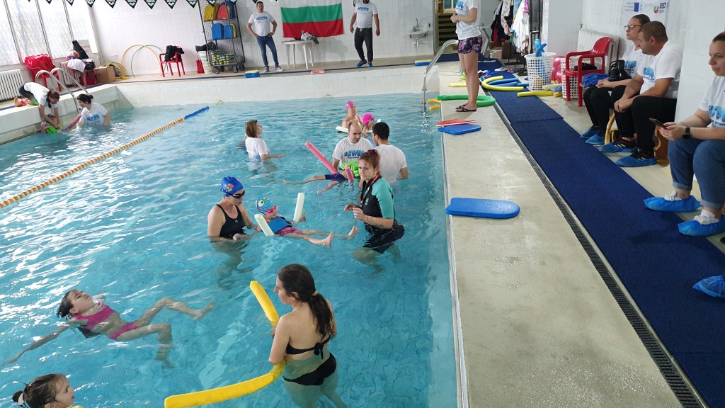 On April 21, 2024, at 131 SU “Kliment Arkadievich Timiryazev” in Mladost district, a test event #SWIM was held, which helped children aged 4 to 7 years, along with their parents, to overcome their fear of water and develop basic swimming skills. Supported by the Erasmus+ program and realized in partnership with the “Adapted Sports” Club and the Center for Personal Development Support ‘Sofia’ Sports School, the event included various exercises for relaxation, underwater breathing, and fun water games that stimulate both the physical and mental development of the children. Parents actively participated in the activities, and experienced swimming coaches provided guidance and support throughout the process. Thanks to their efforts and excellent organization, the event was both fun and educational, contributing to the children’s healthy lifestyle and improving their swimming skills. Each participant received a special gift and left with positive memories of the experience.