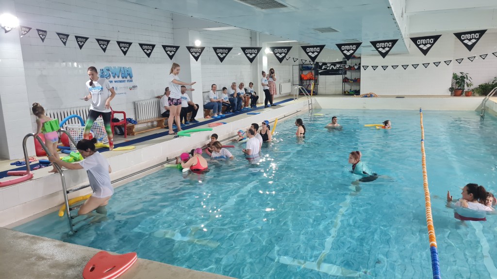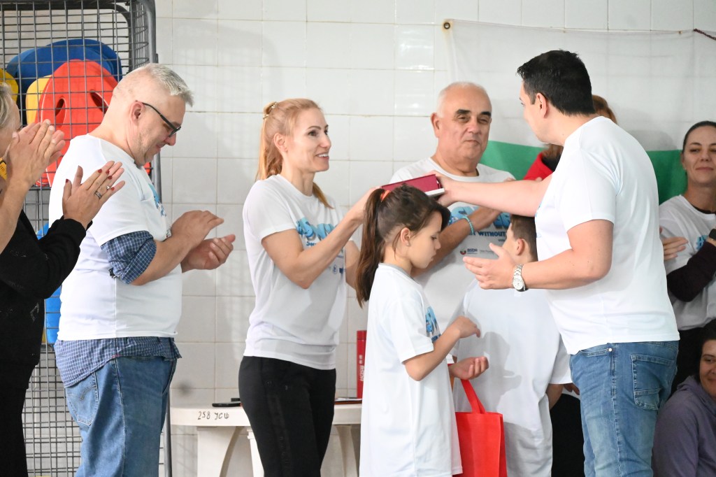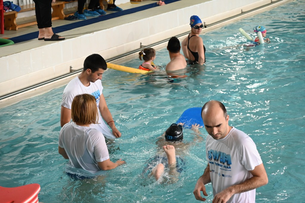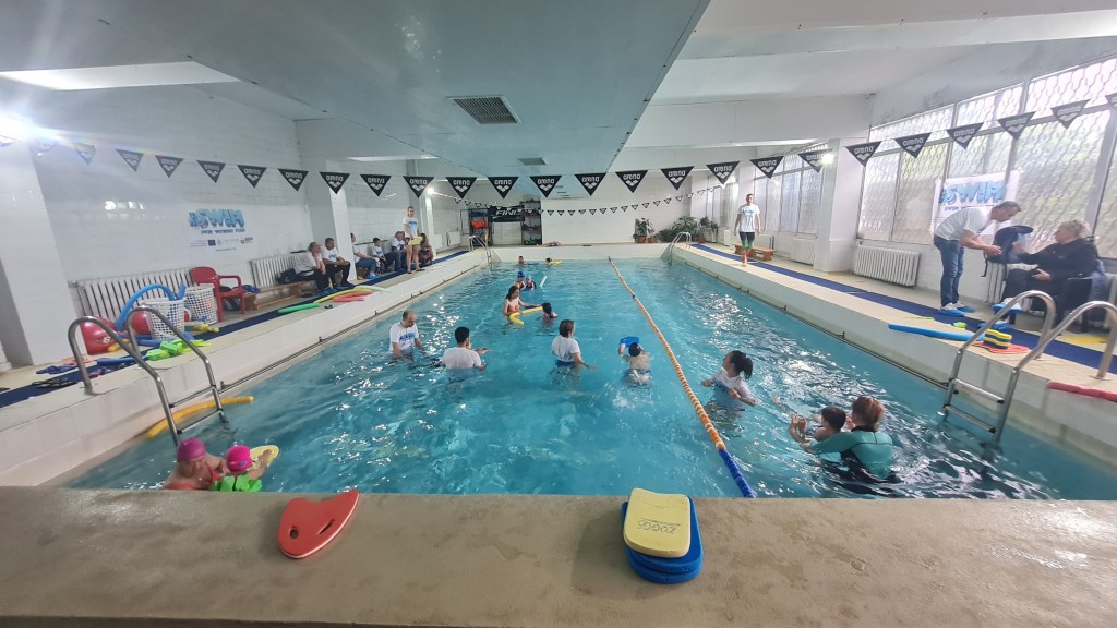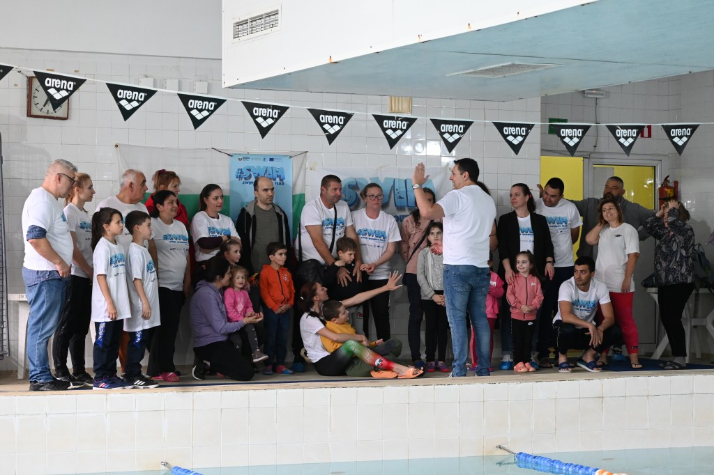 On April 21, 2024, at 131 SU “Kliment Arkadievich Timiryazev” in Mladost district, a test event #SWIM was held, which helped children aged 4 to 7 years, along with their parents, to overcome their fear of water and develop basic swimming skills. Supported by the Erasmus+ program and realized in partnership with the “Adapted Sports” Club and the Center for Personal Development Support ‘Sofia’ Sports School, the event included various exercises for relaxation, underwater breathing, and fun water games that stimulate both the physical and mental development of the children. Parents actively participated in the activities, and experienced swimming coaches provided guidance and support throughout the process. Thanks to their efforts and excellent organization, the event was both fun and educational, contributing to the children’s healthy lifestyle and improving their swimming skills. Each participant received a special gift and left with positive memories of the experience.